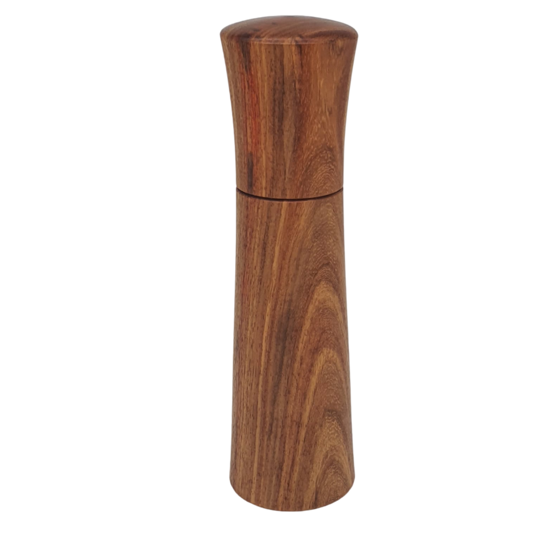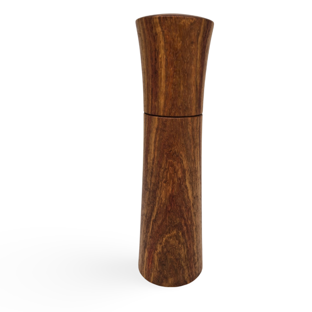 Wooden salt and pepper mill made from Kiaat (Pterocarpus angolensis) wood.